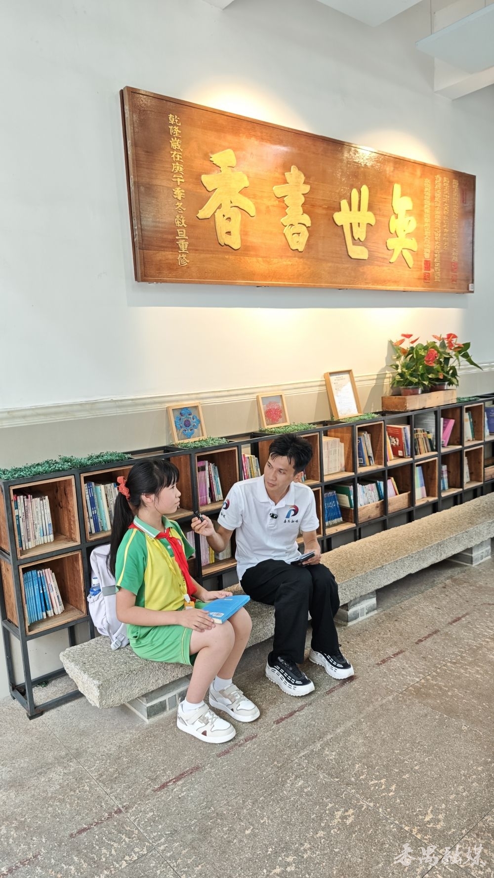 随后镜头转向黄编小学。校门处的“奕世书香”木匾象征着对祖德的铭记与文化传承。学生代表与老师分别在校园内与主持人互动,通过分享学习生活和教学理念,展现黄编村文脉相承的良好村风。黄编小学四年级二班的学生们现场朗诵了一首苏轼的诗词,让直播间的观众们纷纷点赞。现场还设置了趣味互动环节,通过提问苏轼诗作,向观众送出十份礼品,极大增强了直播的参与感。